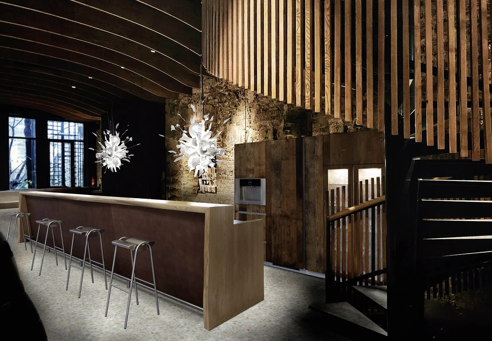 Les locaux qui ne sont pas utilisés pour l’habitat mais à des fins professionnelles exigent des concepts d’aménagement conçus sur-mesure en tenant compte de tous les besoins individuels. Le projet CUP, pour lequel on a travaillé avec du bois massif, est une cave voûtée avec bar utilisée comme salle de fêtes.