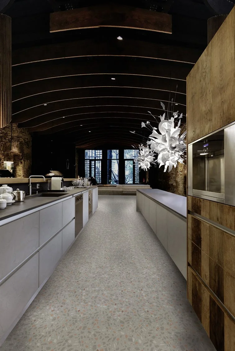 Le concept consiste en un îlot central et un comptoir coulissant qui dissimule complètement la zone de travail de la cuisine constituée d’une seule plaque d’acier. Dès qu’il est allongé, il se transforme en une grande table qui invite à se retrouver entre proches.