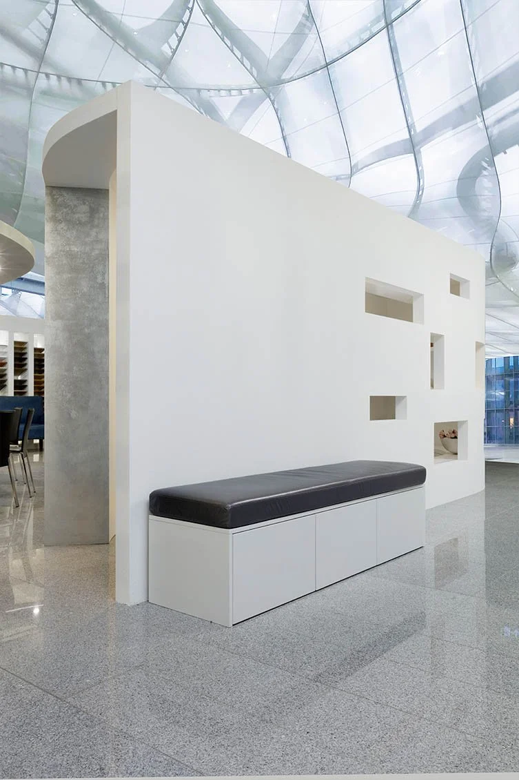 La salle de réunion est un lieu représentatif qui contribue à l’embellissement de l’environnement de travail. Chaque jour, la salle de réunion devient une scène pour les discussions et les négociations, un espace de vie qui rend possible la fusion des idées et des visions. Pour les collaborateurs, l’environnement de travail est une expérience à 360°. Ils ne sont pas assis en permanence à leur poste de travail. Il est important de donner un peu d’espace à la salle de réunion et d’offrir calme et sphère privée afin de mieux travailler en groupe. Des projets d’aménagement de ce type sont à la fois inévitables et essentiels pour les réunions avec les clients et les fournisseurs.