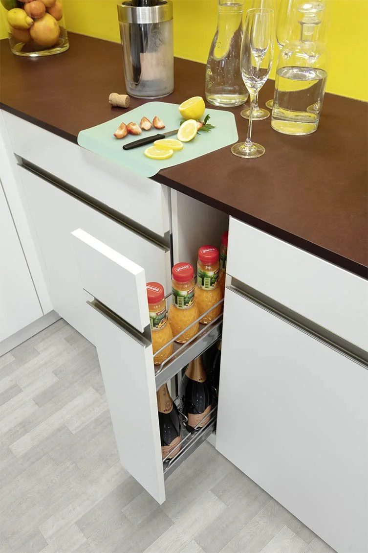 Suite à différentes expériences, la mini-cuisine a été optimisée. Elle est aussi unique que son propriétaire. Chaque élément est conçu et fabriqué avec la plus grande minutie jusque dans le moindre détail. Elle est idéale pour un utilisateur individuel mais aussi pour les grands immeubles.